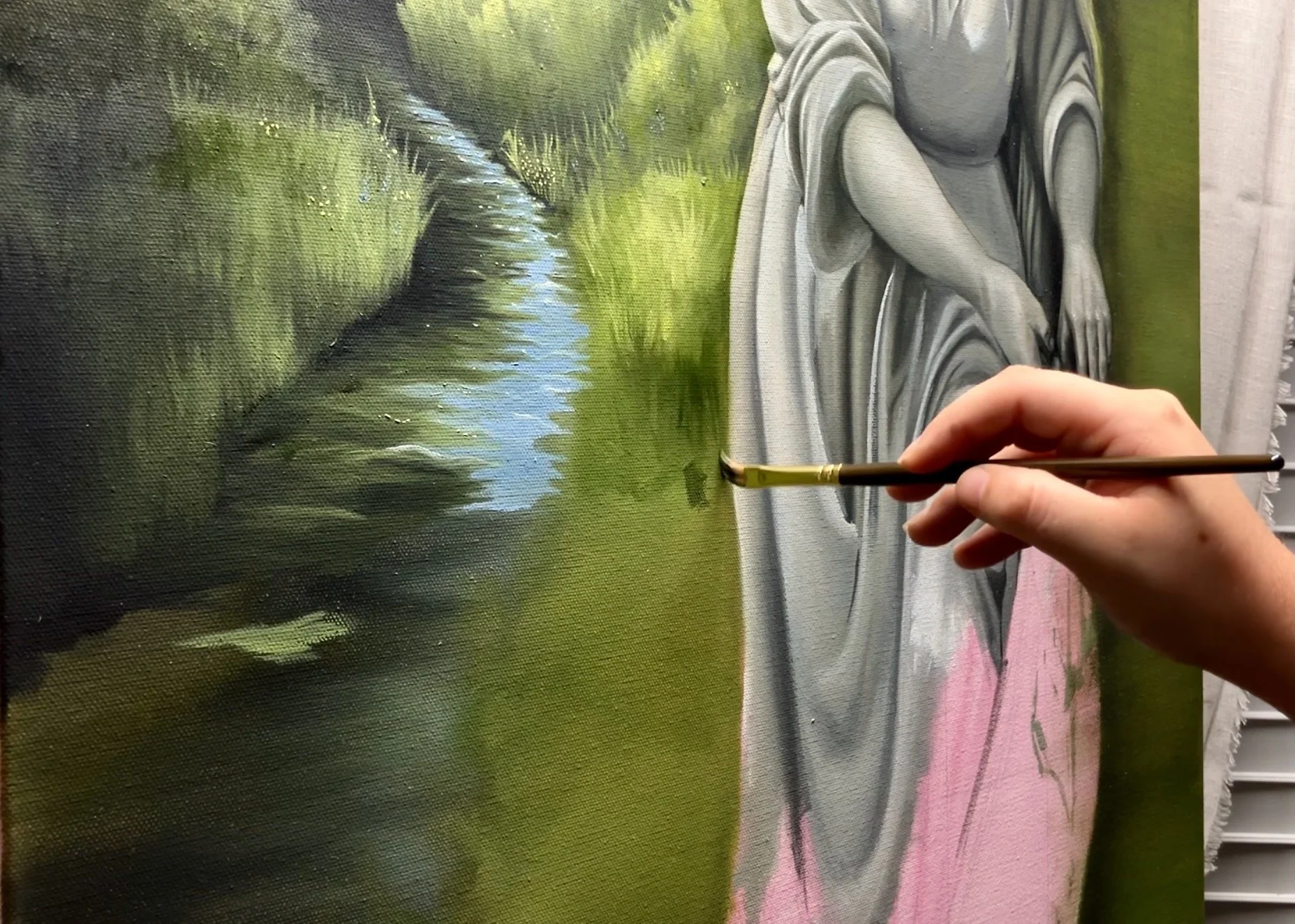 First mentioned in Joshua 2, here Rahab is portrayed as garden statue, standing in solitude among the lush greenery surrounding her.